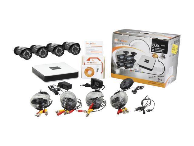 LaView LV-KD5144B Cube Series 4 CH D1 Security DVR Cloud System w/ Easy DIY Four 600TVL Infrared Surveillance Cameras (No HDD)