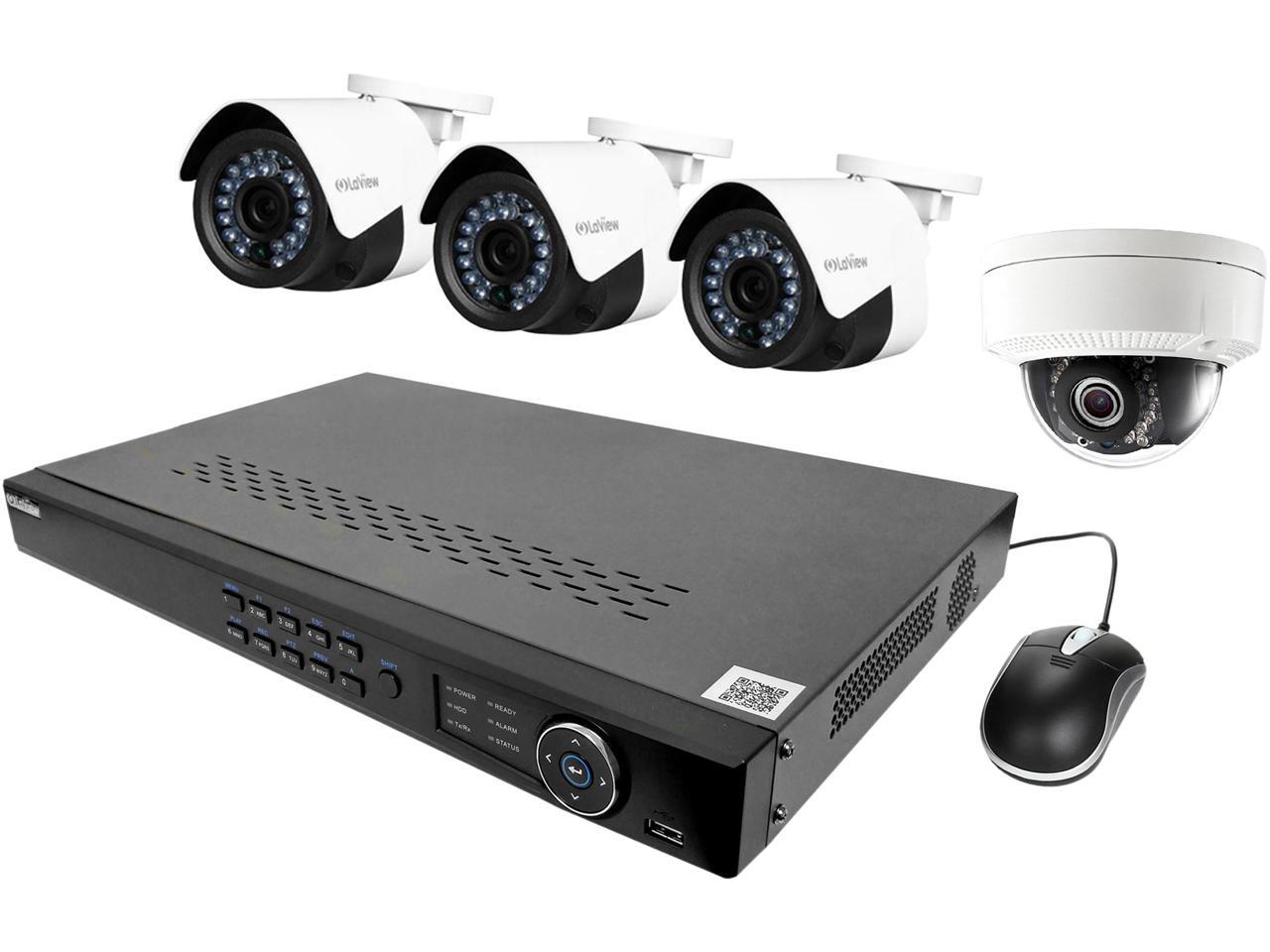 LaView LV-KND988P84D231 IP Security System 4 Cameras 8 Channel NVR, 3 x HD 1080P Bullet and 1 xHD 1080P Wide Angle Dome Day / Night In / Outdoor Cameras (No HDD Included, Sold Separately)