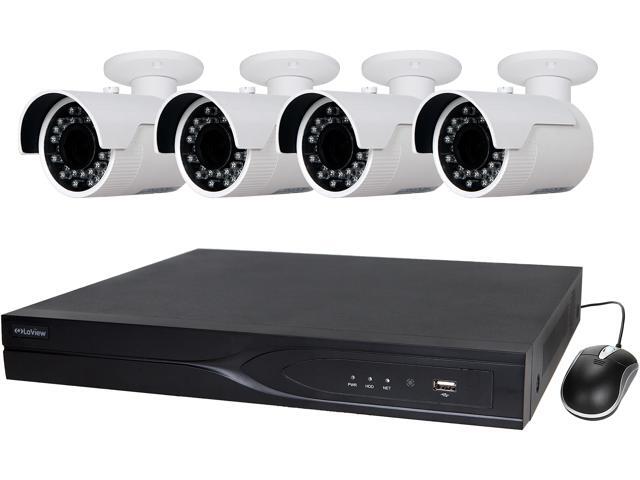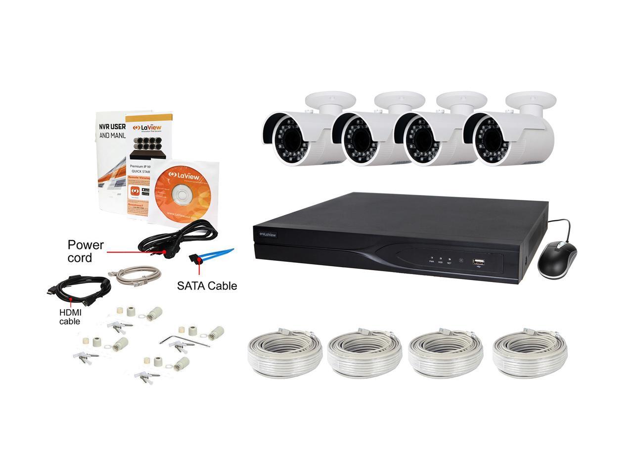 LaView 4MP IP Security System 4 cameras 16 channel NVR with 4K Output H.265 Codec, 4 x Full HD 4MP Bullet Day / Night In / Outdoor Weather Proof Cameras (No HDD Included, Sold Separately)