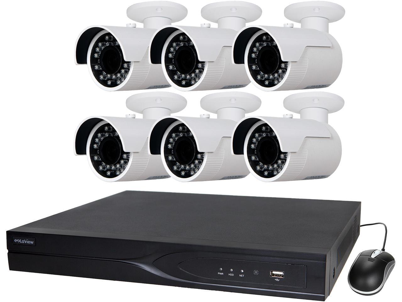 LaView 4MP IP Security System 6 Cameras 16 Channel NVR with 4K Output H.265 Codec, 6 x Full HD 4MP Bullet Day / Night In / Outdoor Weather Proof Cameras (No HDD Included, Sold Separately)