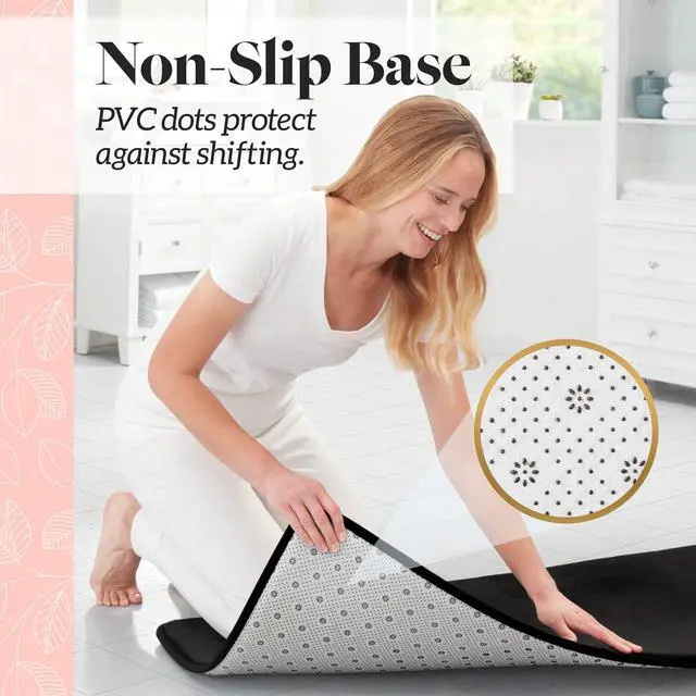 NON-SLIP - Equipped with a secure, non-slip backing material that ensures the bathroom mat stays in place, even on smooth tile or hardwood surfaces.