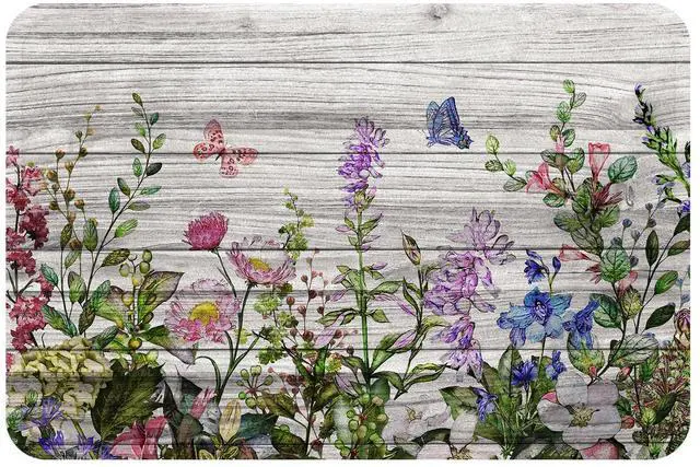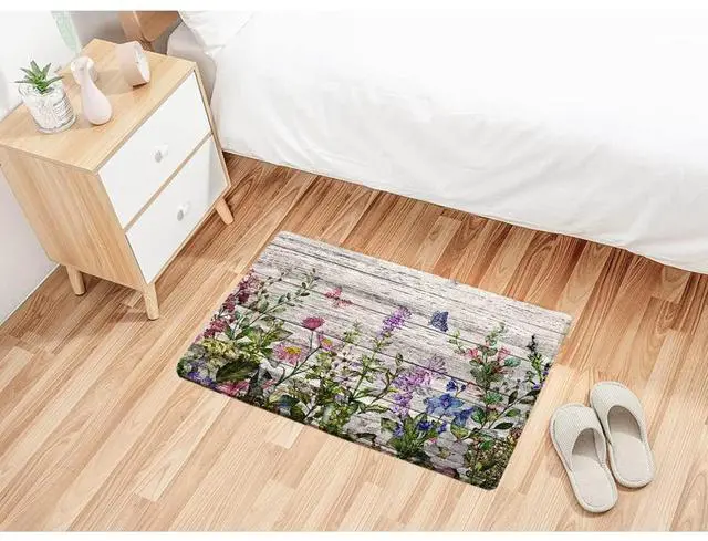 Floral Bath Mat Spring Flower Bath Rugs Floor Mat Microfiber Memory Foam Bathroom Decor Mat with Non Slip Backing for Kitchen Bedroom 29.5L x 17.7W Inches (75Lx45Wcm) (Green)