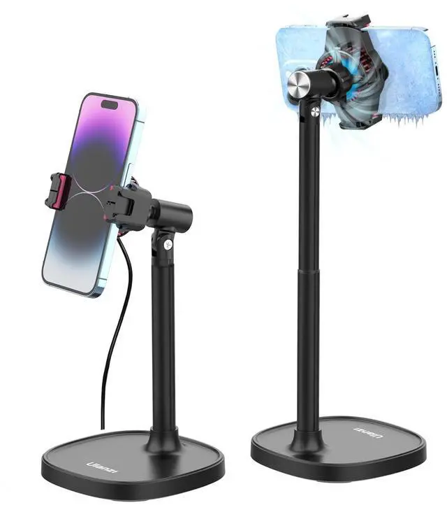 SK-06 Cell Phone Stand with Phone Cooler, Desktop Phone Live Streaming Solution with Phone Cooling Fan, Height Adjustable Phone Cooler Stand Compatible with All Mobile Phones, iPhone & Android