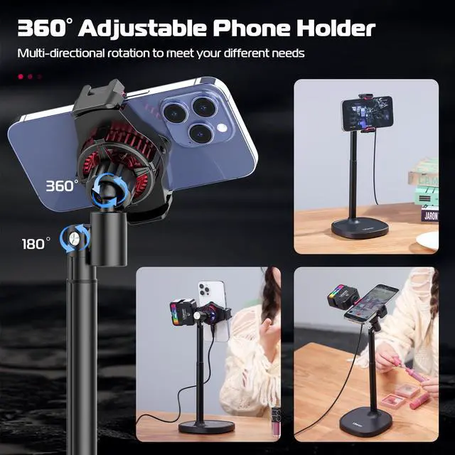 Versatile Functionality: Seamlessly switch between a phone clamp and desktop stand for an immersive live streaming and extended gaming experience. Embrace unparalleled flexibility in any situation.