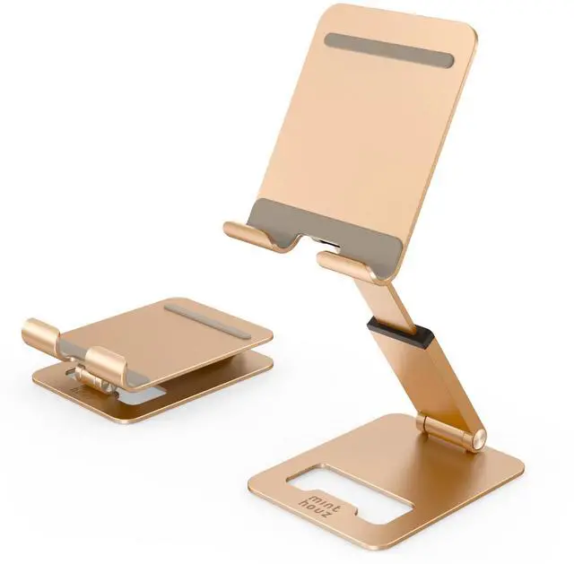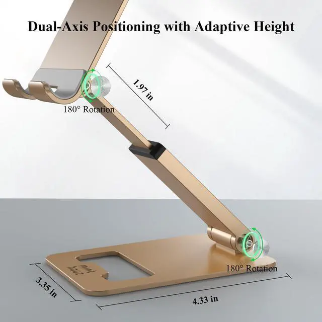Premium Adjustable DesignEngineered with a retractable metal rod and precision damping hinge, Minthouz phone stand offers 180° rotation with 85-135mm height adjustment; Achieve ergonomic viewing angles for video calls, recipe browsing, or desk work while maintaining proper posture; The sleek metallic finish seamlessly blends with modern home/office décor