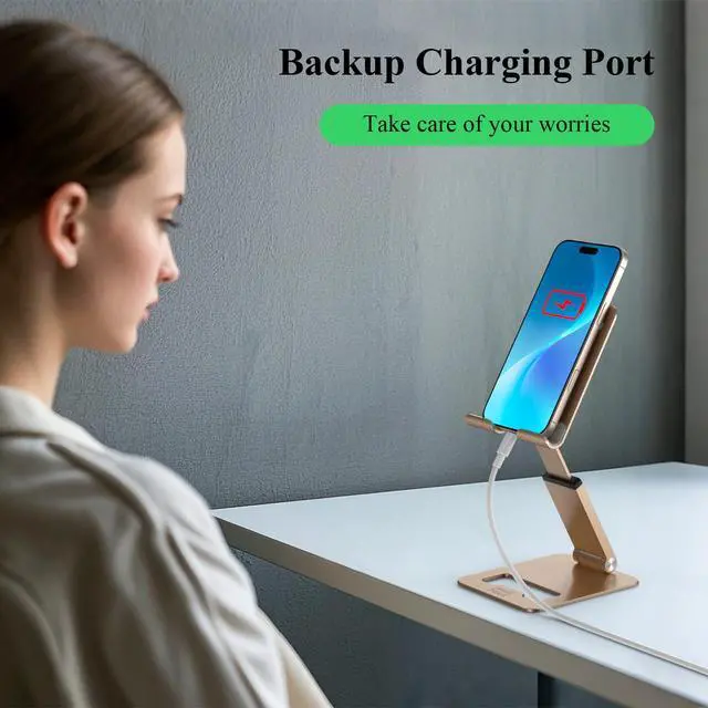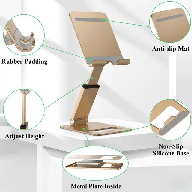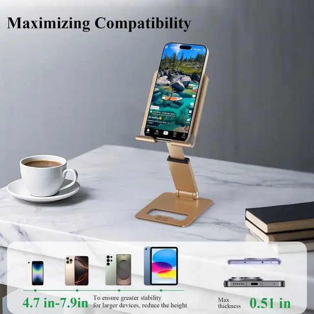Phone Stand, Extendable & Foldable Mobile Phone Stand, Angle/Height Adjustable Phone Holder Compatible with iPhone 17 16 15 14 Pro Max and More 4.7"-7.9" Phones-Gold (Gold)