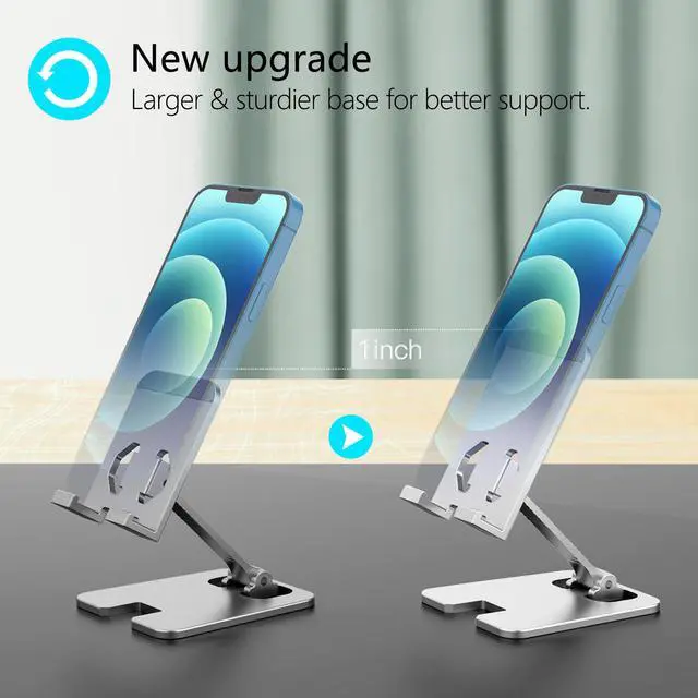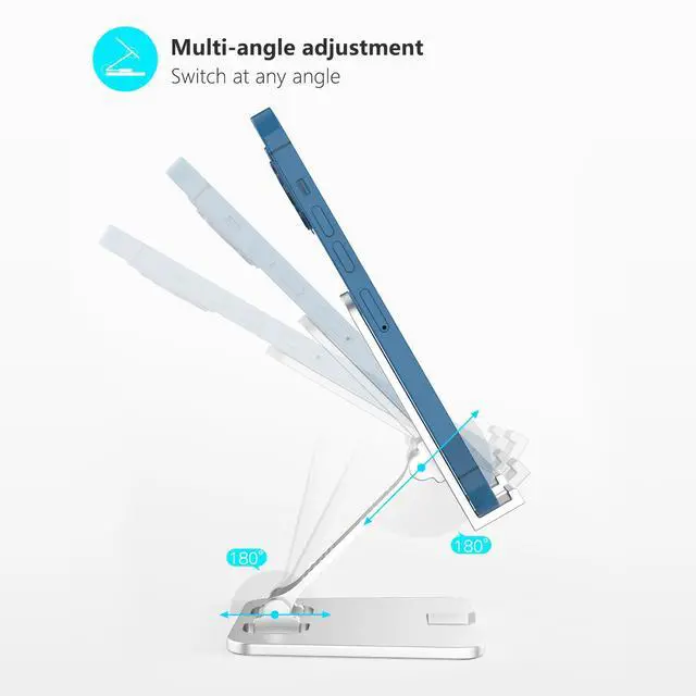 Foldable & PortableDesigned for convenience, this foldable phone holder is compact and easy to carry. The phone cradle is fully collapsible, can be easily adjusted to ideal position, hands-free, which is a good desk accessories while watching video, playing games, making phone call, viewing recipes, using Facetime.