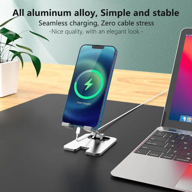 Durable DesignThe mobile phone stand is made of high quality premium aluminum, Its durable structure can withstand daily use, stays firmly in place, hold your phone steadily, no worry any wobble at all. The rubber pads can protect your phone from any scratching and sliding.