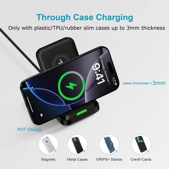 1Pack wireless charger with 3FT cable with adapter