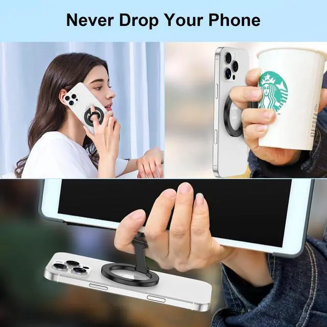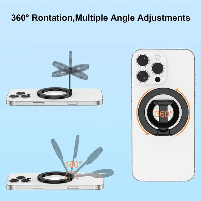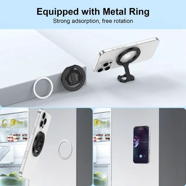 Experience ultimate versatility with our dual-sided magnetic design. Featuring 360° rotation and strong magnets, this phone ring holder offers a secure grip and flexible viewing.Foldable kickstand provides stability, while wide device compatibility ensures it works with various smartphones.