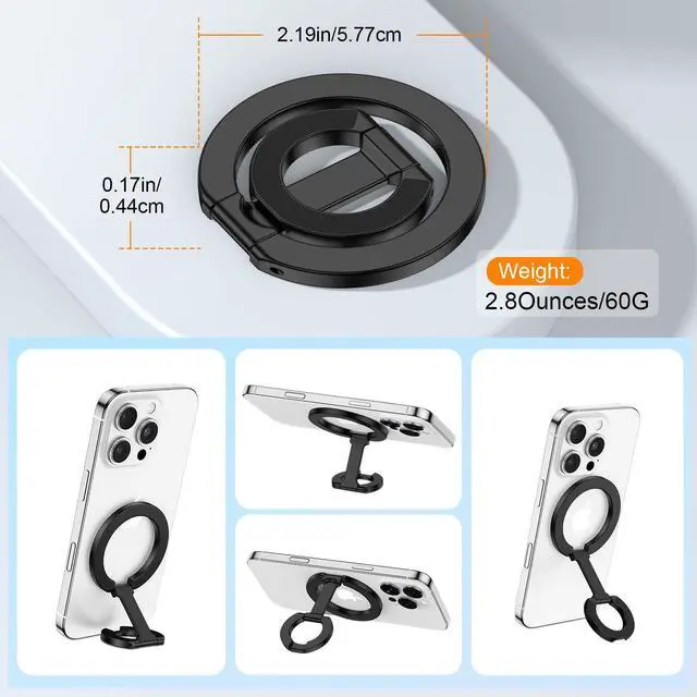 Double magsafe ring holder features a unique dual-sided magnetic design.It can stick to both metal and non-metal surfaces such as refrigerators, mirrors, walls, and gym equipment
