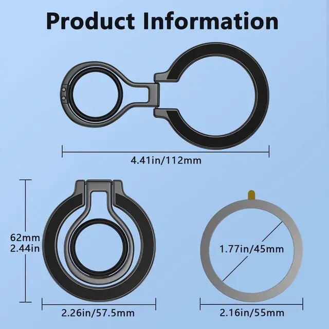 The magsafe phone ring holder, which is composed of super strong magnets, can support the weight of five iPhones. You can hook your phone with one finger and the magsafe phone grip will hold it very tightly.