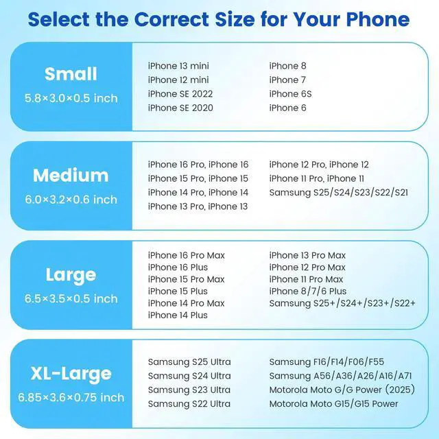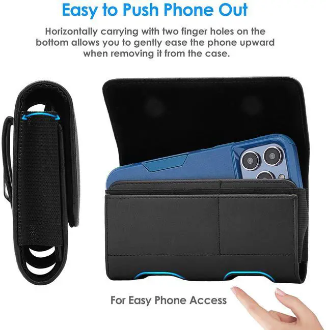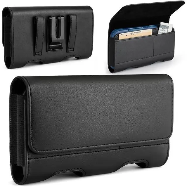 It’s compatible with most smartphones using slim or medium cell phone cases, whether you’re using an iPhone, Samsung, or Motorola. From small phones like the iPhone SE to larger Galaxy and Moto G models, this phone belt holder has a size that fits.