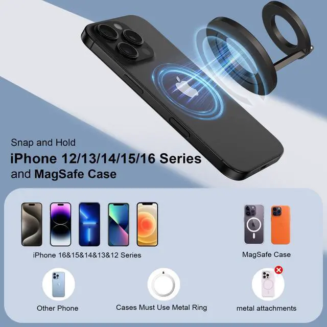2.For other smartphones without magsafe function, you can use our complimentary metal ring to fit.