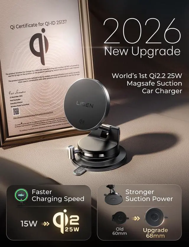 ![Alt view image 6 of 7 - Qi2.2 25W Magsafe Car Mount Charger,[More Stable & Faster Charging] Suction Cup Phone Mount, Wireless Car Charger 25W for iPhone 17 16 Samsung Galaxy S26 Ultra,15W for iPhone 17e 15 14 13 12](https://c1.neweggimages.com/productimage/nb640/C2JJD2601230XV11S46.jpg)