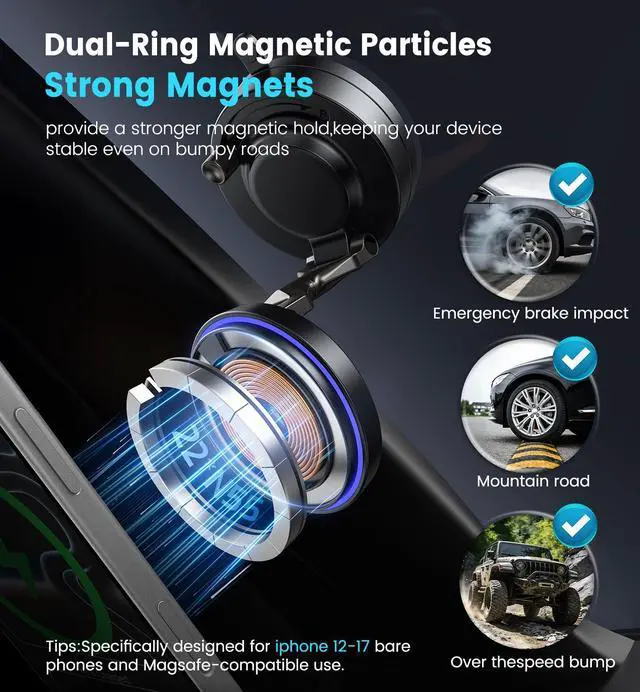 for MagSafe Car Mount Charger 15W Fast Wireless Charging Magnetic Car Phone Holder, 82+LBS Strongest Suction, 3200gf Strongest Magnetic,360°Rotatable Stand for iPhone 17-12 Pro Max Plus Air