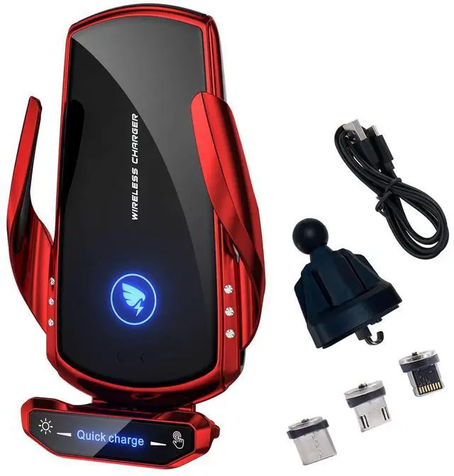 INTELLIGENT DUAL CONTROL WIRELESS CAR CHARGER BRACKETInteresting induction retractable car Phone Holder Mount Wireless Charging,Free 3 magnetic suction heads,The wireless charging car mount can clamp the mobile phone automatically. If your mobile phone supports wireless charging, Please link the data cable directly to the car wireless charging stand, and do not use the magnetic head to charge the mobile phone