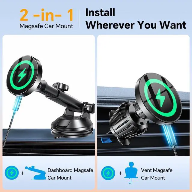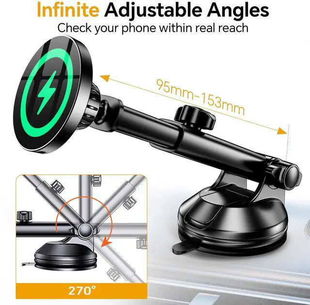 Kaistyle for Magsafe Car Mount Charger[Upgraded Strongest Magnet] Wireless Car Charger Magnetic Phone Holders for Your Car Suction Cup Phone Mount for MagSafe Car Charger for iPhone 16 15 14 13 12
