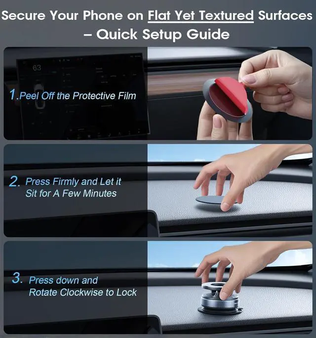 3 boosting suction by 60% compared to traditional press-on mounts and normal vacuum suction mounts. It stays stable on bumpy roads or during sudden stops. The 4-layer high-strength nano gel suction cup supports up to 98lbs and holds firmly in extreme temperatures (-40°F to 300°F)