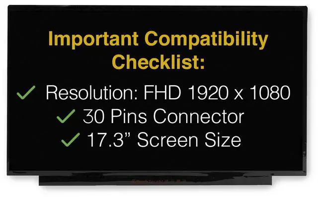Extremely Important: You must match the resolution, backlight, and screen size to your current screen. You cannot deviate from your current screen specifications. Purchasing a screen with different specifications will not work with your system. If you are unsure what your current screen specification is, please contact us and we will gladly help.