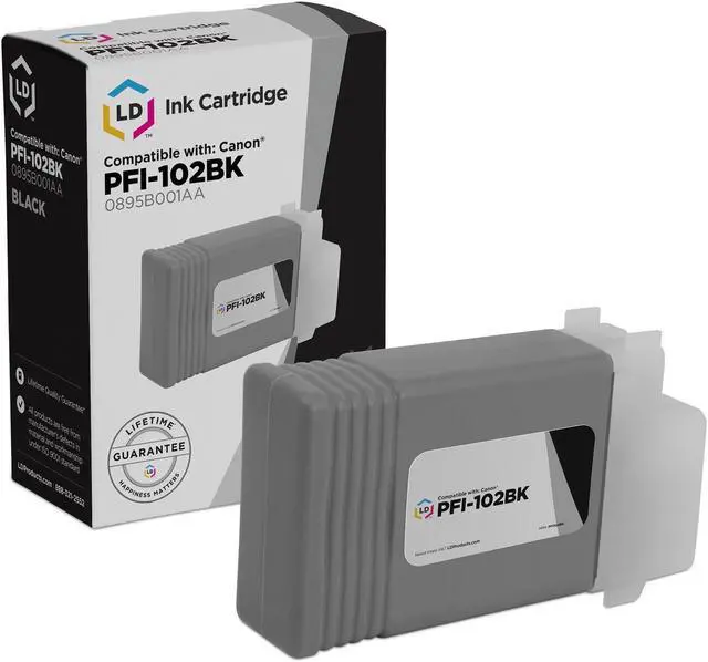 Save even more with our compatible inkjet cartridge. This item includes 1 PFI-102BK Black ink cartridge. Why pay more for brand name Canon PFI-102 cartridge? This item works in the following Canon imagePROGRAF