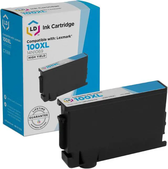 Our compatible replacement for 14N1069 (#100XL) high yield cyan inkjet cartridges are manufactured to deliver optimal performance and high quality printouts at a fraction of the cost of the Lexmark14N1069 ink-jet cartridges. You will be satisfied with the high quality print outs of our compatible replacement for the 14N1069 (#100XL) ink jet cartridges or your money back. Why pay more for a 14N1069 brand name ink cartridge? Save 75% Compared to MSRP on the replacement for Lexmark 14N1069. LD Products Cartridges are manufactured in an internationally certified ISO 9002 factory. LD Products cartridges come with technical support.