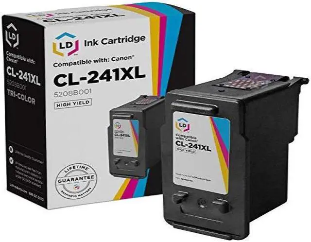 This professionally remanufactured Canon 5208B001 / CL-241XL high yield color inkjet cartridge is an original Canon 5208B001 high yield color ink-jet cartridge which has been through one cycle of service and has been recharged. The 5208B001 high yield color ink cartridge has been thoroughly cleaned along with the printhead nozzles. Then the original 5208B001 was inspected for any possible shell leakage, tested on the operation of all electrical circuitry and finally ran through an actual print test. If the inkjet cartridge passes our rigid standards, it is a remanufactured 5208B001 for your Canon printer! Compatible with your Canon printer.