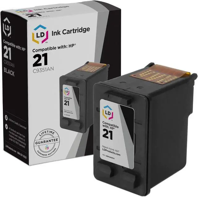 This LD remanufactured C9351AN (HP 21) black inkjet cartridge is an original Hewlett Packard C9351AN ink cartridge which has been through one cycle of service and has been recharged. This LD remanufactured C9351AN ink cartridge has been thoroughly cleaned along with the printhead nozzles. Following the cleaning process, we refilled the cartridge with a professionally manufactured pigment-based ink formula for archival print life and color stability. This ink formula is specially designed to produce vibrant and long-lasting prints comparable to HP. After carefully inspecting the shell for leakage and monitoring the electrical circuitry for efficiency, we put the cartridge through a final print test to be certain it is worth of our 100% money-back guarantee.