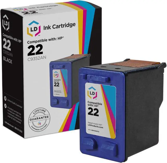 This Item Includes: 1-Pack Remanufactured Ink Cartridge Replacement for HP 22 C9352AN (Color). Why pay more for brand name when our Remanufactured printer supplies deliver excellent quality results for a fraction of the price? For use in the following Printers 3910 3915 3920 3930 3930v 3940 3940v D1311 D1320 D1330 D1341 D1360 D1368 D1415 D1420 D1430 D1445 D1455 D1460 D1468 D1470 D1520 D1530 D1550 D1555 D1558 D1560 D1568 D2320 D2330.. Our cartridges are good for home, office or when you're running a business. Our products are put through a rigorous testing process where they are monitored for quality and reliability. Knowing the ink cartridge that works most efficiently with your printer model is important. Please note, retail packaging may vary and these cartridges will only work with printers purchased within the United States and Canada. The use of this compatible cartridges are not manufactured by HP.