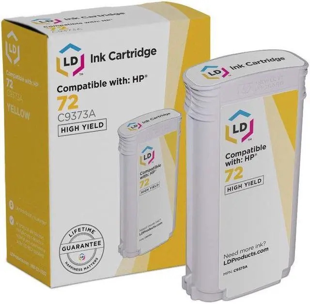 Save and print even more with our replacement for HP 72 C9373A Ink. This offer includes 1 remanufactured replacements for HP 72 ink cartridge Yellow. Why pay more for expensive brand name HP 72 Ink? Compatible with DesignJet T1100, T1120, T1200, T610, T620, T770, SD Pro MFP, T1100ps, T1120 SD-MFP, T1120ps, T1200ps, T1300, T2300, T2300ps, T790, T795 printers.. Our cartridges are good for home, office or when you're running a business. Our products are put through a rigorous testing process where they are monitored for quality and reliability.