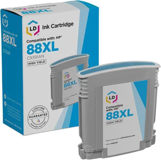 Save even more with our remanufactured inkjet cartridge. This item includes 1 C9391AN high yield cyan inkjet cartridge. Why pay more for brand name Hewlett Packard 88XL cartridge when our remanufactured printer supplies deliver excellent quality results for a fraction of the price? Our remanufactured cartridges for HP are built to perform. So stock up now and save even more! Our remanufactured ink cartridges are not remanufactured by HP. This item works in the following