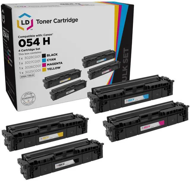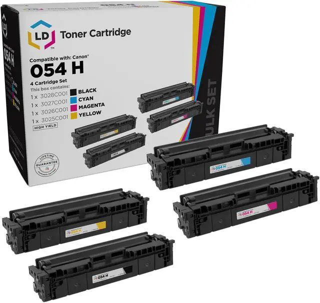 LD Compatible Toner Cartridge Replacements for Canon 054H High Capacity (Black, Cyan, Magenta, Yellow, 4-Pack). Professionally manufactured by LD Products.