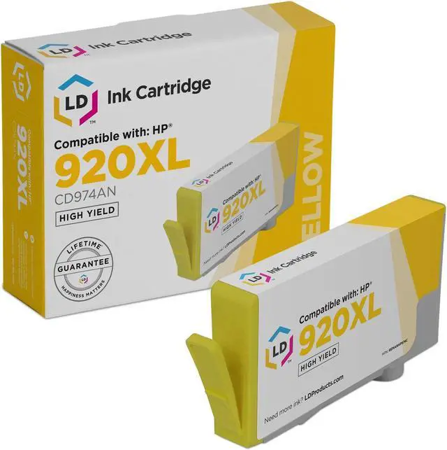 Save and print even more when you shop with LD Products! This offer includes (1) compatible replacement for CD974AN / HP 920XL yellow high yield ink cartridge. Why pay more for expensive brand name ink? For use in OfficeJet 6000, 6500, 6500a, 6500a Plus, 7000 Wide Format, and 7500a printers. Please note, retail packaging may vary, and these cartridges will only work with printers purchased within the United States and Canada. The use of compatible replacement cartridges and supplies does not void your printer's warranty. Professionally manufactured by LD Products.