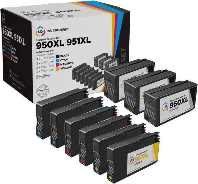 Save and print even more when you shop with LD Products! This offer includes (3) CN045AN Black, (2) CN046AN Cyan, (2) CN047AN Magenta and (2) CN048AN Yellow high yield ink cartridges; they replace the original HP 950XL and 951XL ink series. Why pay more for expensive brand name HP ink? This ink cartridge set is compatible with HP OfficeJet Pro 251dw, 276dw MFP, 8100, 8600, 8600 Plus, 8600 Premium, 8610, 8615, 8616, 8620, 8625 and 8630 printers. Please note, retail packaging may vary and these ink cartridges will only work with printers purchased within the United States and Canada.