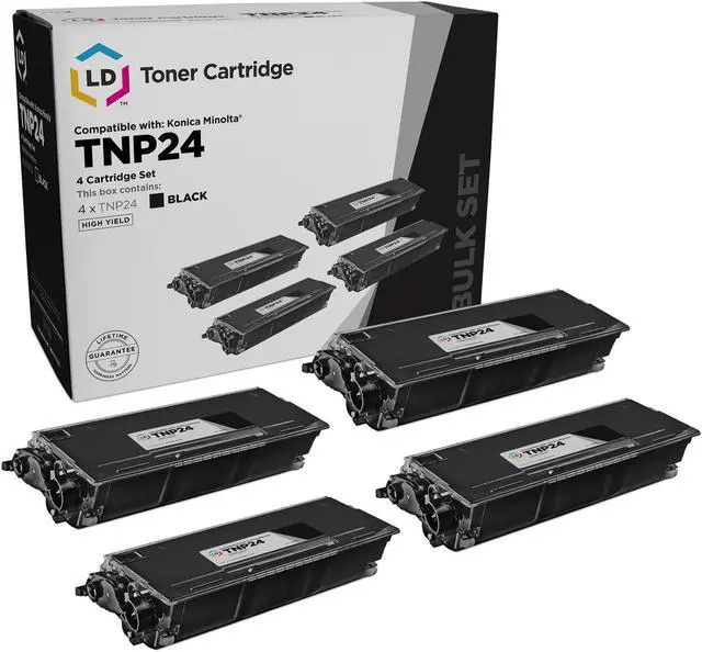 Save even more with our set of 4 compatible high yield laser toner cartridges. This set includes 4 TNP24 high yield black laser toner cartridges. Why pay more for brand name Konica Minolta A32W011 cartridge? Our compatible brand replacement ink cartridges for Konica Minolta are built to perform. So stock up now and save even more! This set works in the following