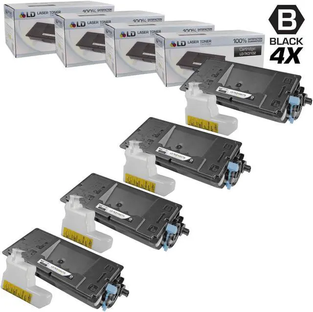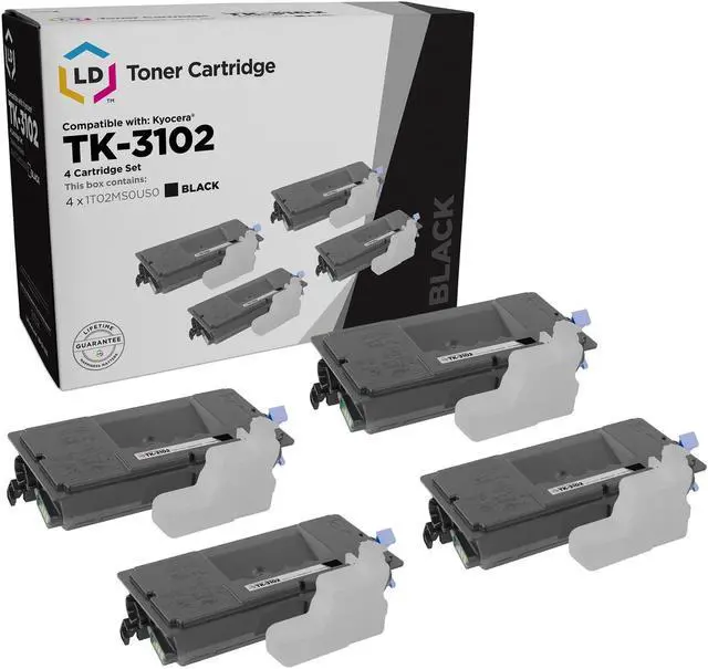 Save even more with our 4 pack of Kyocera-Mita TK-3102 laser toner cartridges. This set includes 4 black TK-3102 laser toner cartridges. Save on our compatible replacement for the Kyocera-Mita TK-3102 black laser toner cartridges. Dont bother with expensive Kyocera-Mita TK-3102 laser toner and take advantage of our compatible replacement for the Kyocera-Mita TK-3102 / 1T02MS0US0 laser toner. Built to meet or exceed (Original Equipment Manufacturer) standards, our compatible TK-3102 toners offer exceptional yields and the highest quality printing results. Our compatible replacement for the Kyocera-Mita TK-3102 toner cartridge is manufactured 100% brand new with a new chip.