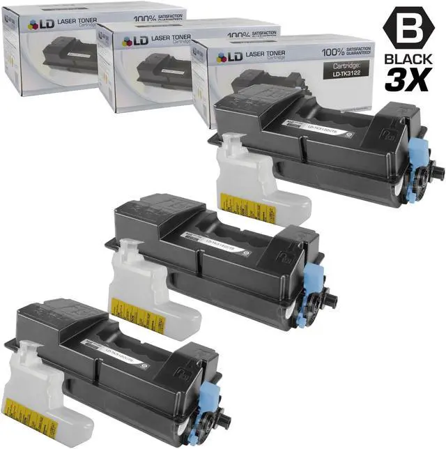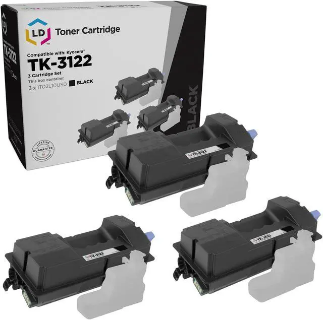 Save even more with our 3 pack of Kyocera-Mita TK-3122 laser toner cartridges. This set includes 3 black TK-3122 laser toner cartridges. Save on our compatible replacement for the Kyocera-Mita TK-3122 black laser toner cartridges. Dont bother with expensive OEM Kyocera-Mita TK-3122 laser toner and take advantage of our compatible replacement for the Kyocera-Mita TK-3122 / 1T02L10US0 laser toner. Built to meet or exceed OEM (Original Equipment Manufacturer) standards, our compatible TK-3122 toners offer exceptional yields and the highest quality printing results. Our compatible replacement for the Kyocera-Mita TK-3122 toner cartridge is manufactured 100% brand new with a new chip.