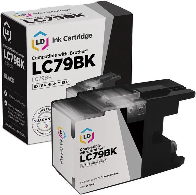 Save even more with our compatible extra high yield laser inkjet cartridge. This item includes 1 LC79BK extra high yield black inkjet cartridge. Why pay more for brand nameBrother LC79 inkjet cartridges? Our compatible brand replacement ink cartridges for Brother are built to perform. So stock up now and save even more! This item works in the following