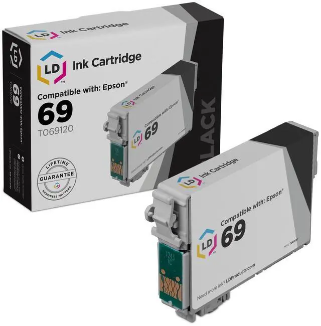 This professionally remanufactured Epson black (T069120) inkjet cartridge is an original Epson T0691/T069120 ink-jet cartridge which has been through one cycle of service and has been recharged. This Epson black T069120 ink cartridge has been thoroughly cleaned along with the printhead nozzles. Then the Epson T069120 was filled with the same ink formula, the internal back pressure was insured and then it was inspected for any possible shell leakage, tested the operation of all electrical circuitry and finally run through an actual print test. The ink monitoring chip on this remanufactured Epson T069120 is the original chip which has been reset to provide accurate ink monitoring. If the T0691 black inkjet cartridge passes our rigid standards, it has been remanufactured for your Epson printer! We offer a 100% Quality Satisfaction Guarantee on our remanufactured T069120 black ink cartridge. For use in the following printers: Epson Stylus CX7400 CX5000 CX6000 CX7000F & CX7000. LD Products is the exclusive reseller of LD Products brand of high quality printing supplies on Newegg.