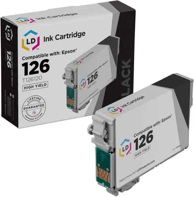 Save and print even more with our LD Products branded replacements for Epson 126 ink cartridges This offer includes 1 remanufactured Epson 126 / T126120 black high yield ink cartridge. Why pay more for expensive brand name epson ink cartridges 126 127? Compatible with Stylus NX330, Stylus NX430, Epson WorkForce 435, WorkForce 520, WorkForce 60, WorkForce 630, WorkForce 633, WorkForce 635, WorkForce 645, WorkForce 840, WorkForce 845, WorkForce WF-7010, WorkForce WF-7510, WorkForce WF-7520, WorkForce WF-3520, WorkForce WF-3530, and WorkForce WF-3540 inkjet printers.