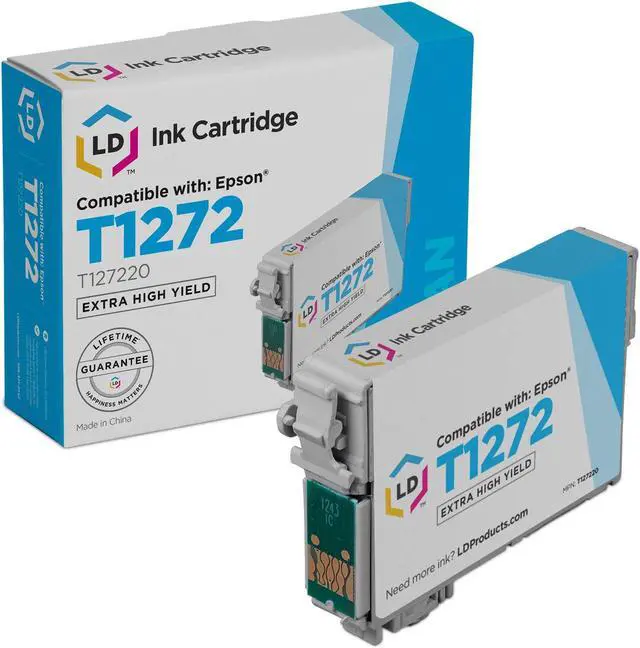 If the T1272 extra high yield cyan inkjet cartridge passes our rigid standards, it has been remanufactured for your Epson printer! For use in the following printers: Epson Stylus NX530, NX625, WorkForce WF-3520, WF-3530, WF-3540, WF-7010, WF-7510, WF-7520, 60, 545, 630, 633, 635, 645, 840, 845. We are the exclusive reseller of LD Products brand of high quality printing supplies.
