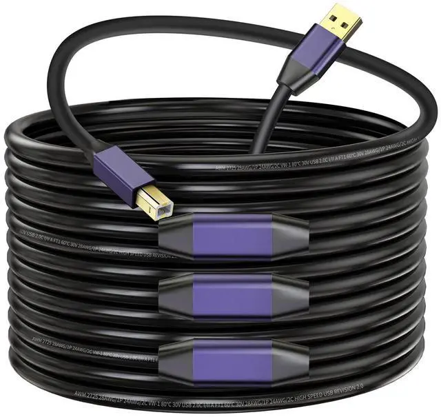 USB 2.0 Printer cable up to 480Mbps high-speed data transfer & backwards compatibility, its more faster, more secure and more stable compared to most Wi-Fi connections, ideal for connecting your scanner, printer, server, hard drive, camera, piano and other USB Type B devices to laptop, computer (Mac/Windows PC) and other USB-enabled device for data transfer.