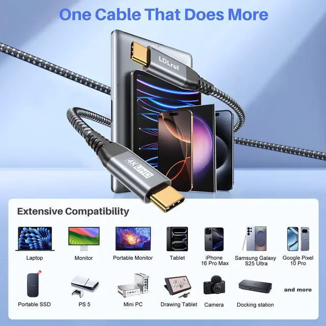 | Apple | iPhone 16/16 Pro/16 Pro Max/15/15 Pro/15 Pro Max, MacBook Pro 2016-2023, MacBook Air 2018-2023, iMac Pro, iMac 2017, Mac mini 2018, MacBook 2015-2017, iPad Pro 11inch & 12.9inch 2018 - 2022, iPad Air 2020-2022, iPad Mini 6, iPad 10, Mac Pro 2019 * Early Apple M1 only supports one external monitor |