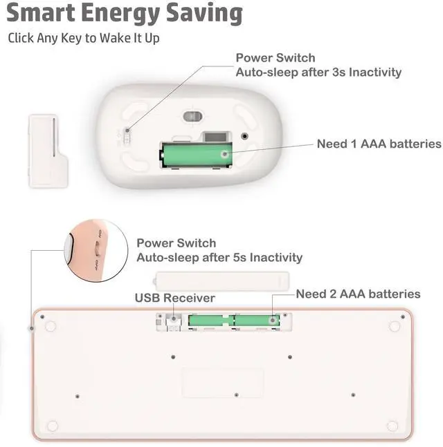 Yes, both the keyboard and mouse are equipped with an automatic sleep mode for power saving, click or press any key to wake them up.