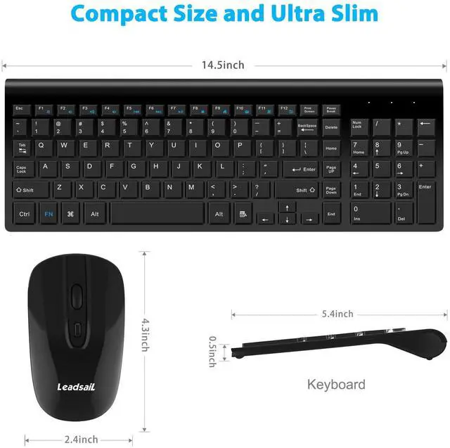 LeadsaiL Wireless Keyboard and Mouse Combo, Wireless USB Mouse and Computer Keyboard Set, Compact and Silent for Windows Laptop, Desktop, PC