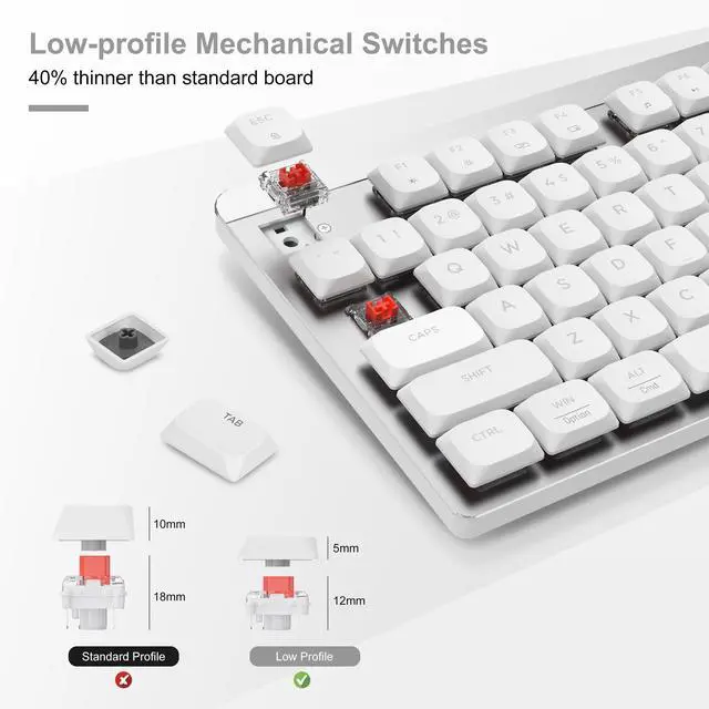 | Special Feature | Low-Profile Mechanical Red Switches, Portable, Ergonomic, Smart Energy Saving, Double Shot Injection Keycaps |