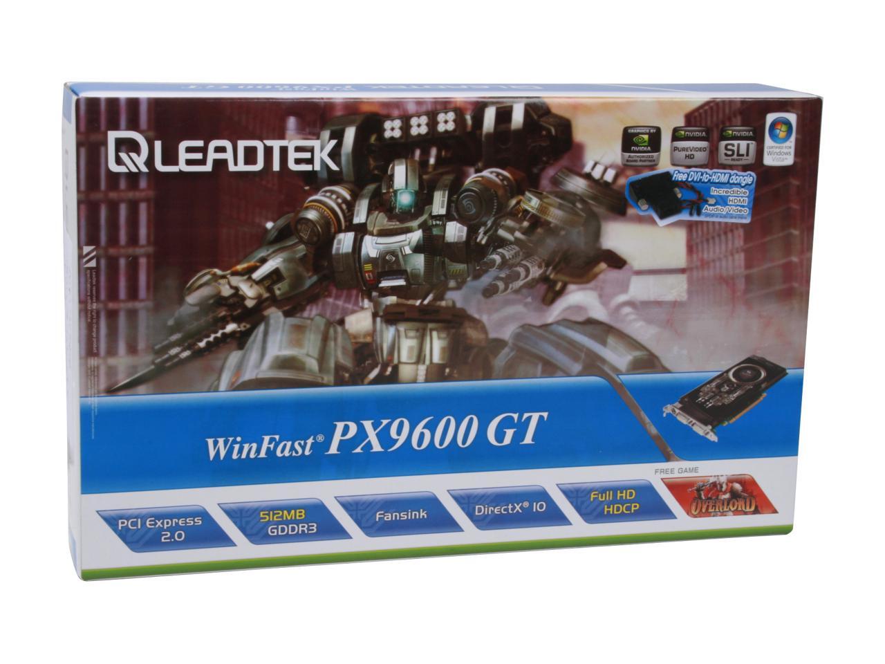 Leadtek GeForce 9600 GT DirectX 10 PX9600GT 512MB 256-Bit GDDR3 PCI Express 2.0 x16 HDCP Ready SLI Support Video Card