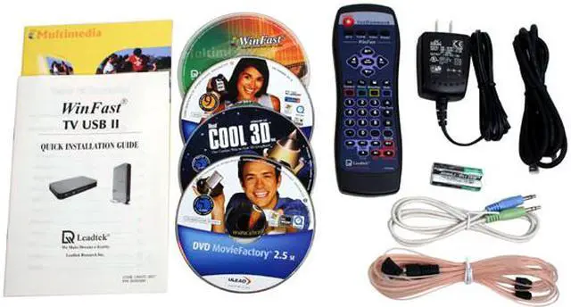 | Features | Watch high-quality TV with stereo in full screen or a scalable window Support Stereo audio,enjoy your high quality Entertainment New Full function Remote control. Easier, friendly fancy user interface. PIP ( picture in picture): One for live and the other for captured program. And master video can be alternative. The slave video can be displayed with any size and anywhere. Time-Shifting: you can pause, rewind live television and instant replays. Take your breaks during a TV show or movie and never have to miss a scene again. Capture format profile: Support friendly setting for MPEG-1/MPEG-2/MPEG-4/WMV/VCD/DVD video and MP3/WMA audio encoding format. De-interlace: Make the best quality for fast-motion video. No noise and flicker on the edge of motion objects. Support Video Streaming(WMV/WMA format) for Web Broadcasting and Network Video/Audio sharing. Provide full version of Ulead Video Studio 7.0, Ulead DVD MovieFactory 2.0 and Ulead Cool 3D 3.0 for Video Editing and VCD/DVD/SVCD Authoring. Bridging video to PC from VCR, camcorder, LD/VCD/DVD player DirectBurn: let you easy to make your own high quality DVD/VCD directly |