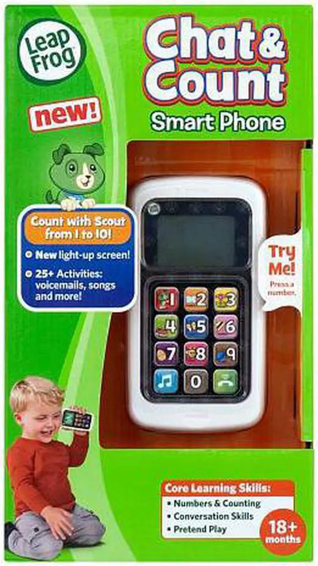 Enjoy fun learning in a smart little phone with the LeapFrog Chat & Count Phone! Sing along to songs about counting and phone routines, explore more than 15 phone activities and call on Scout for learning fun as you trade calls and voicemails with your puppy pal! Parents can connect to the online LeapFrog® Learning Path for customized learning insights and ideas to expand the learning. LeapFrog is a leading designer, developer and marketer of innovative, technology-based educational products and related proprietary content and learning toys and learning games. LeapFrog is 100% focused on developing products that will provide the most engaging, effective learning experience - for all ages, in school or home, around the world. LeapFrog puts learning toys first with online technologies, including the LeapFrog Learning Path. The LeapFrog Learning Path lets you see the skills your child is exploring with LeapFrog, see time spent playing, challenge level and more, find learning ideas to match your child's passions, and discover your child's favorite activities. The LeapFrog learning toy experience is brought to life by LeapFrog's highly specialized teams who unite the three key elements that truly set LeapFrog products apart: a rigorous, proven learning toy methodology, compelling multi-layered content, and delivered content and learning toy experience through the use of technology that is intuitive, invisible and engaging. Leapfrogs Learnings Toys include, Leapster, TAG, TAG Jr., DIDJ, Zippity, My First Leap Pad, Learn and Groove and My Puppy Pal.