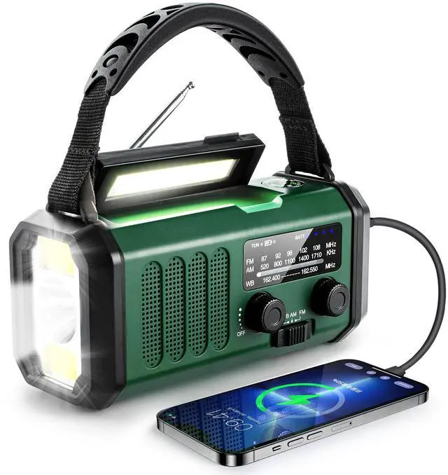 3 power sources including a hand crank, solar panel, built-in rechargeable battery, and AC power to charge your phones, tablets, or other gadgets. The battery backup to keep your weather radio running during a power outage and AC power to preserve the batteries at other times. The built-in battery can provide with 28 hours of light,24hours of radio and emergency device charging.A hand crank and solar panel to make it easier to keep the radio running during a prolonged situation where AC power is off and batteries have been used up.